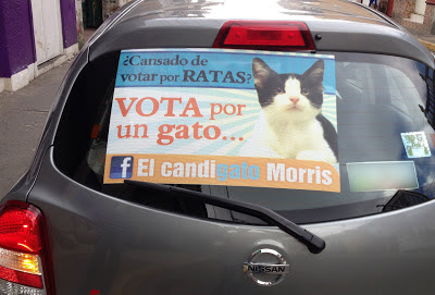 Meksika'nın Xalapa şehrinde yaşayan Sergio Chamarro ifade özgürlüğünün kısıtlandığını düşünerek kedisi Morris'i aday olarak gösterdi.Tabii ki resmi aday değil.Chamarro, Facebook üzerinden başlattığı kampanyada kendisinden ve özellikle de kedisi Morris'ten epeyce bahsettirdi.